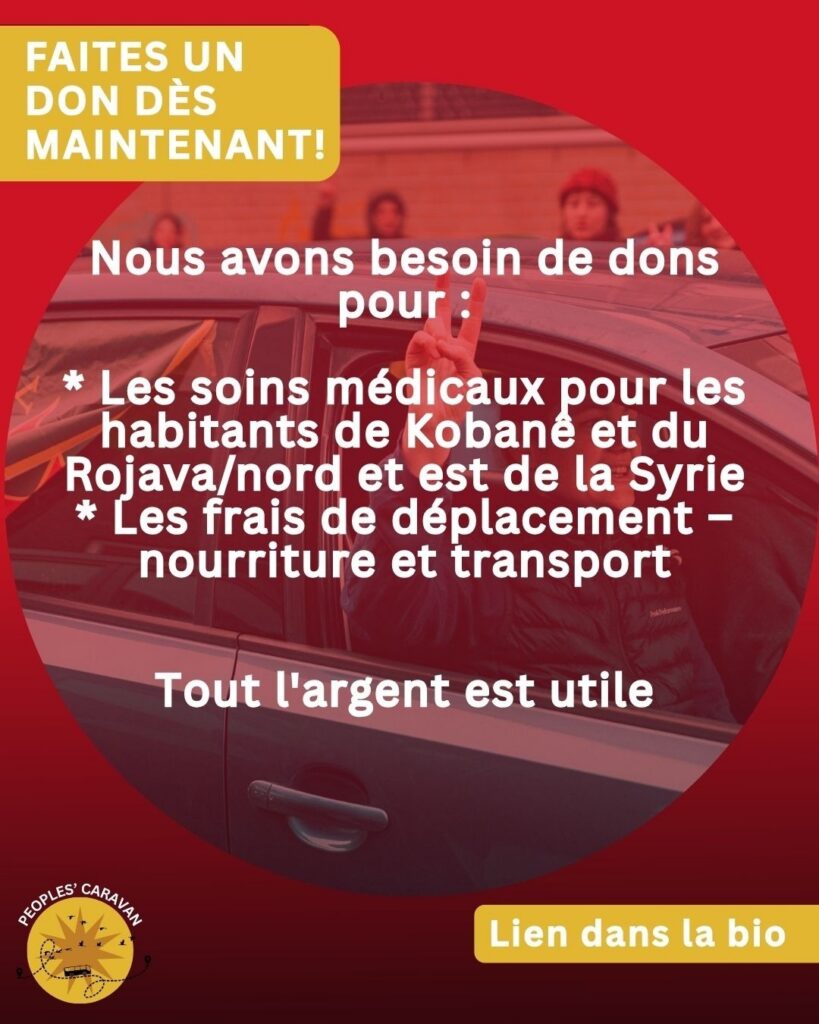Depuis plus d’une semaine, l’Administration autonome démocratique du Nord-Est de la Syrie est attaquée par les milices djihadistes de Jolani. En tant que membres de la Caravane Populaire, nous n’accepterons pas cela. Nous voulons soutenir les peuples de la région : Nous faisons route ensemble, formant une caravane de l’humanité, vers la frontière entre la Turquie et la Syrie !